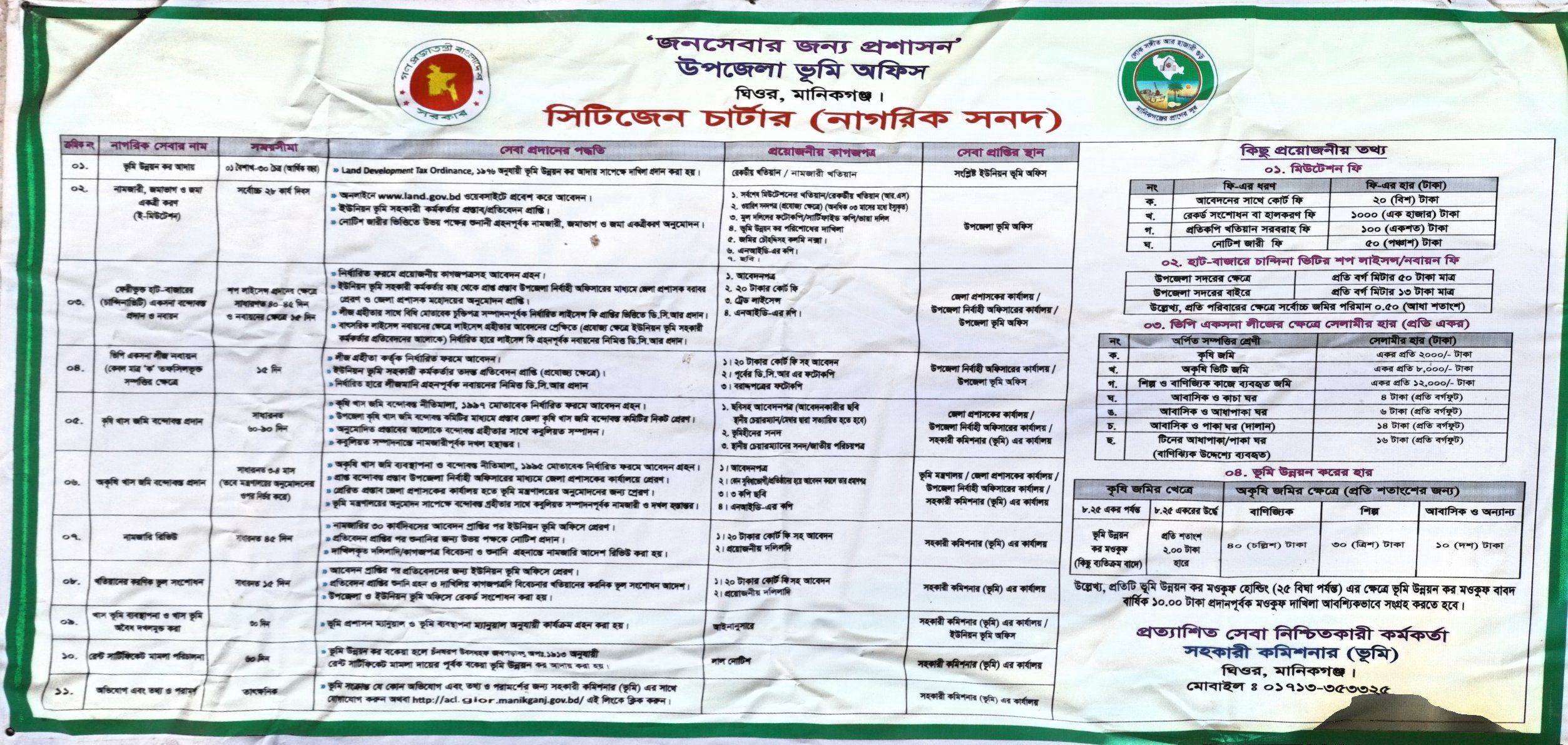 ঘিওর উপজেলা ভূমি আফিসের সিটিজেন চার্টার সংযুক্ত করা হলো।